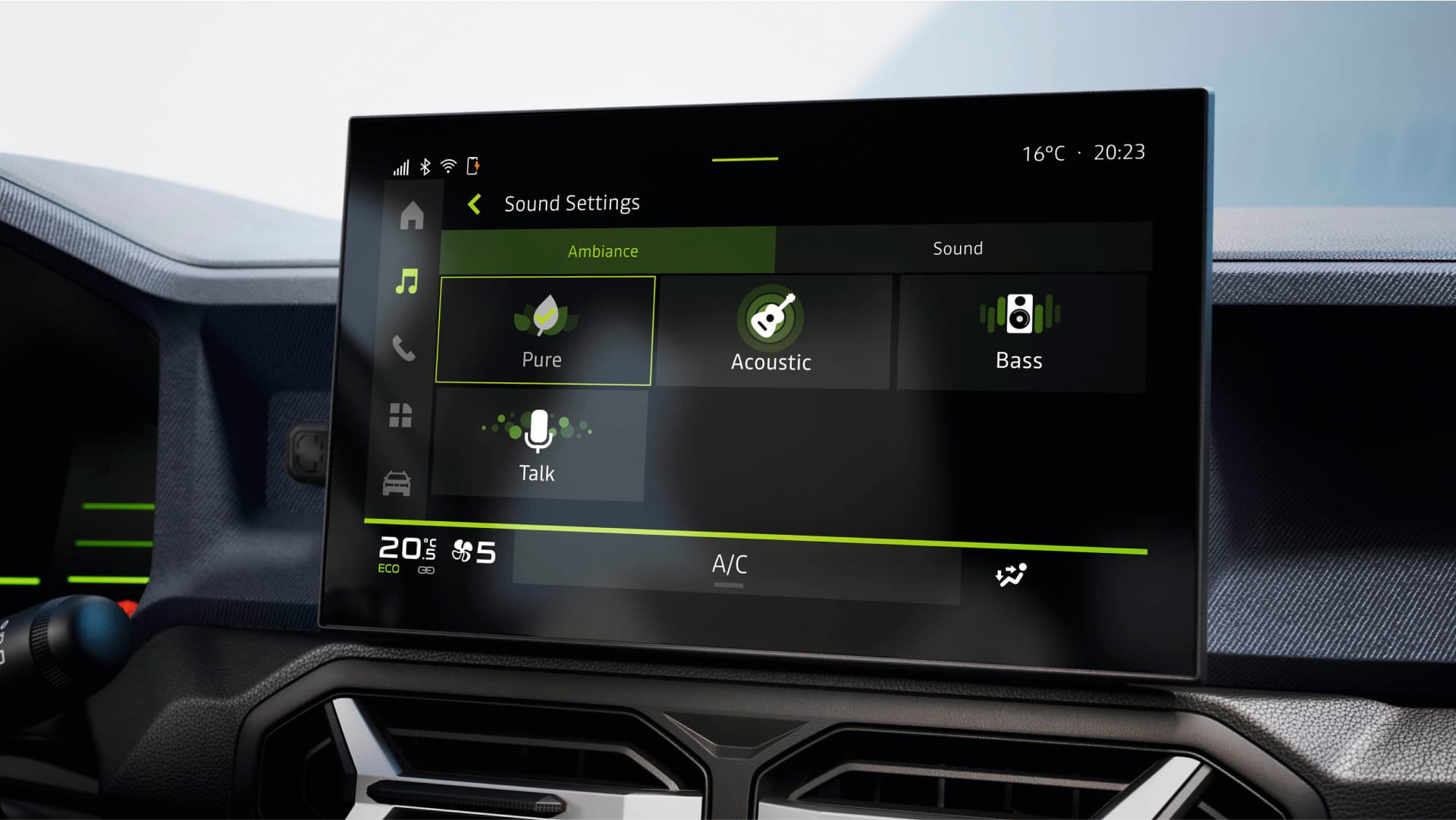 Medieskjerm (10,1'' skjerm, 4 høyttalere, replikering av trådløs smarttelefon, tilkoblede tjenester)