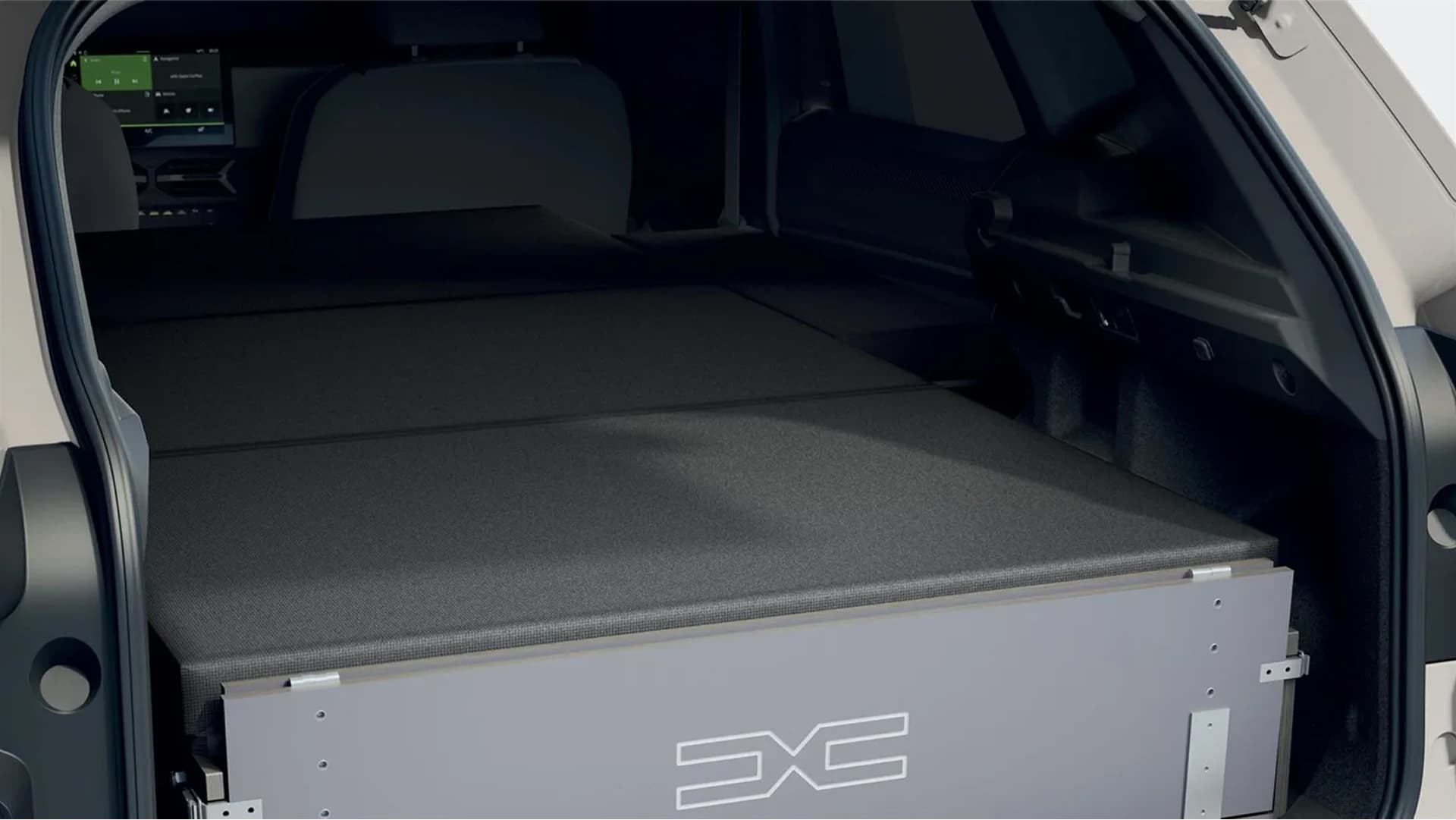 Sleep pack fra Dacia InNature-tilbehørsserien er en 3-i-1-boks med sammenleggbar madrass. Enkel å installere og fjerne, du kan ha et brettbord for å spise under beskyttelse av bilens bakluke. I tillegg kan du på under 2 minutter folde ut en dobbeltseng med 190 cm lang og opptil 130 cm bred sengebunn ved bakdørene.